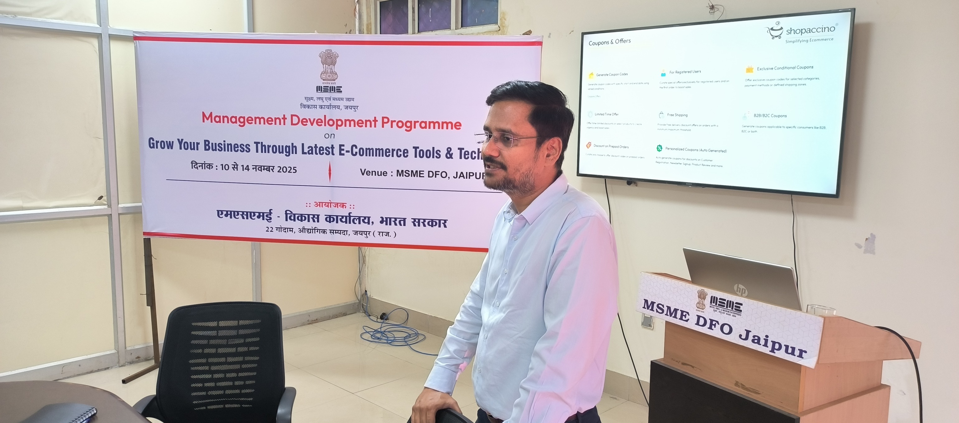 جايبور، راجستان – 30 ديسمبر 2025 – نظمت حكومة جايبور من خلال MSME-DFO في جايبور التابع لوزارة الشركات الصغيرة والمتوسطة في حكومة الهند حديثًا برنامجًا لتطوير الإدارة يهدف إلى مساعدة الشركات الصغيرة والمتوسطة في تعزيز نمو أعمالها من خلال أدوات التجارة الإلكترونية والتقنيات الرقمية.